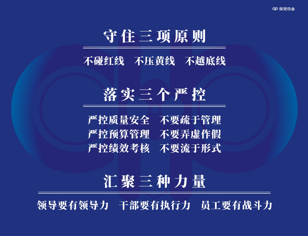 集團(tuán)總裁鐘海榮在會(huì)上作重要講話。他首先對龐總年度工作報(bào)告予以充分肯定并感謝各級(jí)干部和全體職工的艱苦努力和辛勤付出。隨后提到,伴隨“三醫(yī)聯(lián)動(dòng)”持續(xù)深入,安全環(huán)保監(jiān)管力度不斷提升,醫(yī)藥行業(yè)迎來了歷史上最困難的時(shí)期,集采以來藥品更是經(jīng)歷了懸崖式降價(jià)。未來三年,集團(tuán)一是要解決生存問題;二是要解決發(fā)展問題;三是要解決做強(qiáng)做大問題。最后,鐘總強(qiáng)調(diào),2021年是仟源醫(yī)藥上市10周年,更是走出困境的關(guān)鍵年。面對外部環(huán)境變化和全新戰(zhàn)略布局帶來的挑戰(zhàn),作為集團(tuán)的一份子,保靈上下要緊緊圍繞集團(tuán)發(fā)展戰(zhàn)略,全面貫徹“十個(gè)不能”,堅(jiān)決守住“三項(xiàng)原則”,有效落實(shí)“三個(gè)嚴(yán)控”,積極匯聚“三種力量”,切實(shí)扭轉(zhuǎn)當(dāng)前困境,努力開創(chuàng)集團(tuán)發(fā)展新局面。